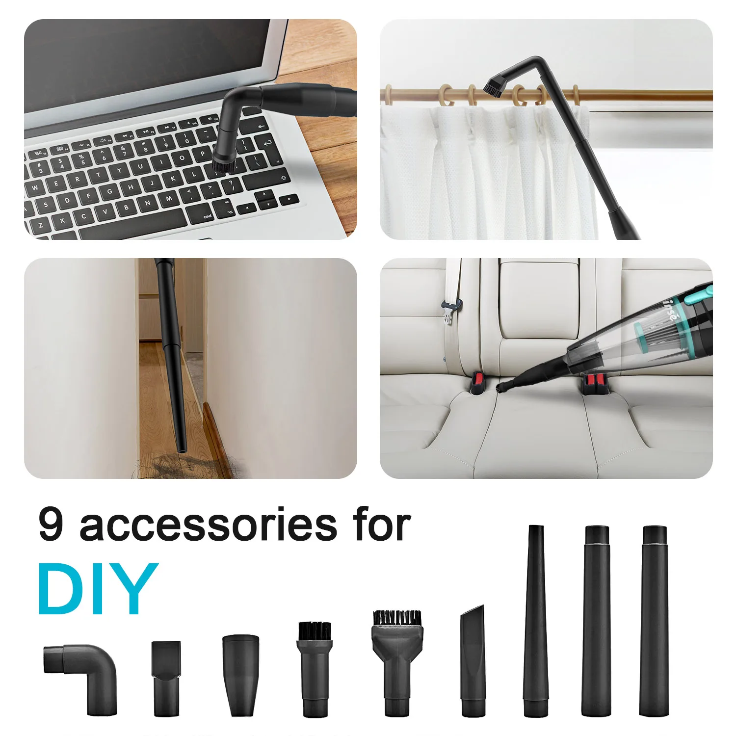 Multi-tool accessory kit included — clean sofas, corners, ceilings, and tight spaces with ease